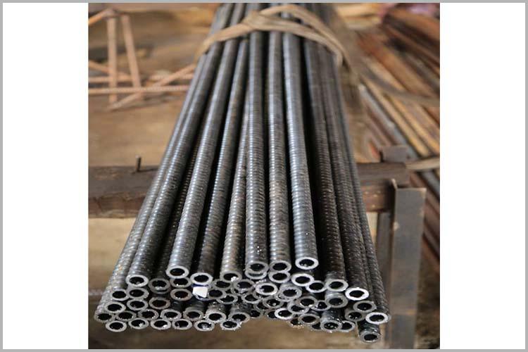 中空注漿錨桿適用于地質(zhì)條件中等,永遠性支護和超前支護通過中空桿體對錨桿進行壓力注漿,可達到固結(jié)破碎巖體,隔斷地下水及桿體防腐的目的,可迅速形成支護力,控制圍巖的穩(wěn)定。中空注漿錨桿由合金桿體、止?jié){塞、墊板、螺母和錨頭組成。桿體中孔作為鉆進高壓風(fēng)水通道和注漿通道,與實心桿體相比,中空桿體設(shè)計可獲得更好的剛度和抗剪強度。